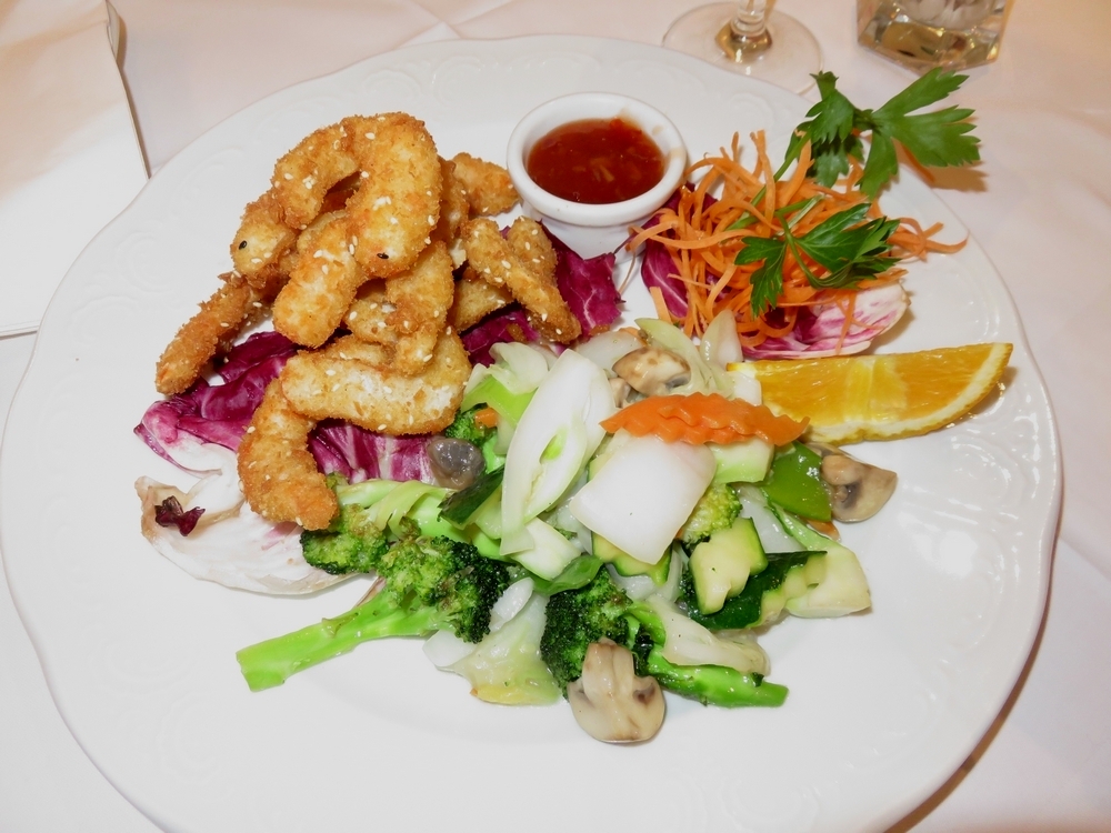 Restaurant Review #106. This is the last restaurant review from our visit to Vienna in Austria last Summer. Here’s an overview of all the restaurants we visited in Vienna. Xu’s Cooking is a vegetarian Taiwanese restaurant on the edge of city center of Vienna. It is a spacious place, with a terrace outside. The interior did ooze a bit of a somber and outdated atmosphere though. Xu’s Cooking has a buffet at lunch time, but we were here for dinner. There is a very extensive menu list. Most dishes are vegan (non-vegan dishes are labelled with a *). There are a lot of dishes with mock meats and ‘fish’. Not being used to so much variety on a menu list any more, it was hard to choose! This is what we had: We were too stuffed for desserts, but were served some banana balls and hot drinks anyway! A very enjoyable dining out experience. Although I am no fan of labelling and especially shaping vegan foods as ‘fish’ or ‘chicken’ (I understand it lowers the treshold …