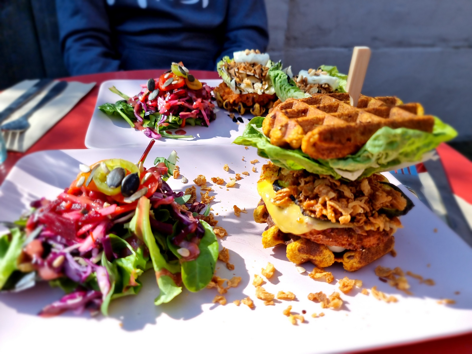 restaurant review #453 – First time visit to this place! 🍔 Not really a fan of these type of burger places, but if you like burgers, then this is your place! I went here for lunch. More because the other place I wanted to go to was full 😉, and I want to try as many places in Bruges as possible, being the Happy Cow ambassador and for my blog. Let’s call this ‘research’ 😄. Two vegan burgers on menu, and also vegan cheeze croquette. Great that they have vegan options, and clearly labelled on the menu! 👍The regular fries are not vegan – fried in beef fat (as is often the case in Belgian restaurants unfortunately…). The sweet potato fries are. 🍟 I had the ‘Belgian vegan deal’ = a burger with sweet potato fries and a drink 22,50€. Expensive for a fastfood place! The burger was OK, a sort of red beet burger. Didn’t like the bun though. Sweet potato fries and veganaise OK. Friendly service. Didn’t have to wait long.A bit crowded …