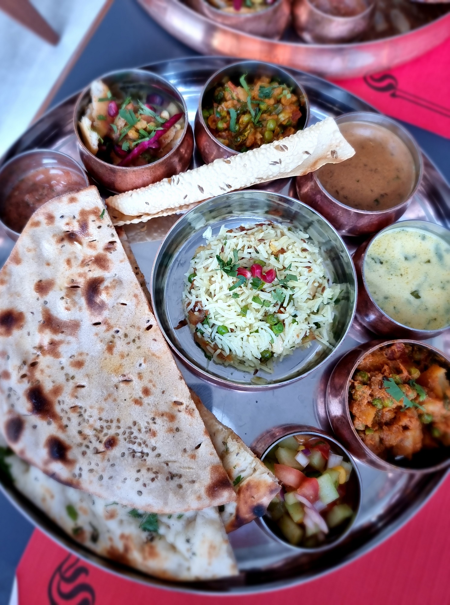 restaurant review #343 – Chandigarh is a new vegetarian restaurant in Brussels, in the city center, near the Cirque Royal (concert venue). We were here for dinner last Summer just before going to a show at the next door Cirque Royal. We went to see Nick Mason’s Saucerful of Secrets, a tour with the drummer of Pink Floyd, playing early Pink Floyd songs (see a clip below and more on my You Tube). And it was awesome! So happy that there is now a restaurant with vegan options in the area!