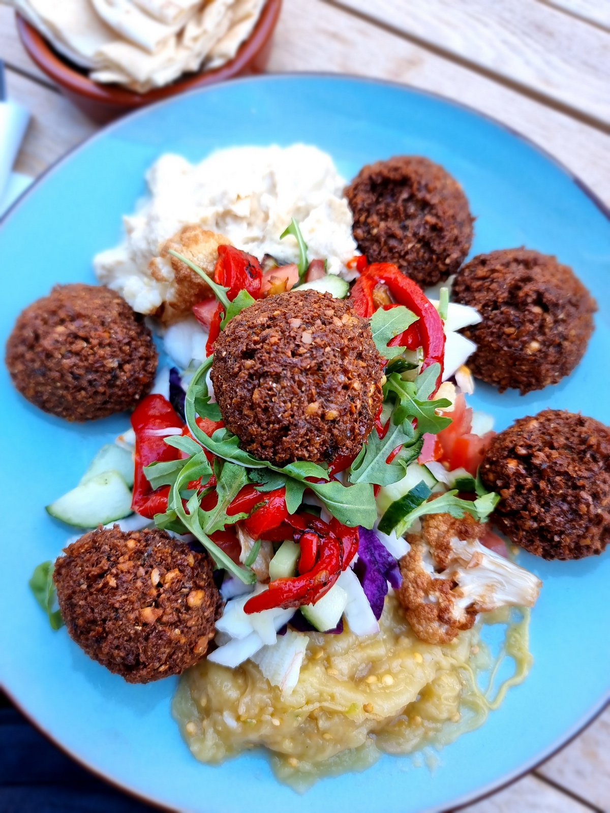 Restaurant review #139 – Mildreds is a vegetarian restaurant in London, and has four locations: Soho, Camden, Kings Cross and Dalston. We went to the one in Soho during our short trip to London this Summer. It is in the south side of Soho, near the very busy Piccadilly Circus. We could not make a reservation, as the restaurant has a no booking policy (which we do find quite annoying, and has left us avoiding certain places in the past). But we had no other dinner plans for that first evening in London, and the restaurant was not too far from out hotel, so we headed there early hoping to get a spot. We arrived a bit before 6PM, and luckily, there was still space. Vegan options are clearly indicated on the menu and the wine list also clearly indicates the vegan wines (I think they were all vegan). We were served free water, which was nice! Glass of wine was £5,5. This what we had for dinner: Gyoza dumplings, £6 Hummus, £6 Wood roasted …