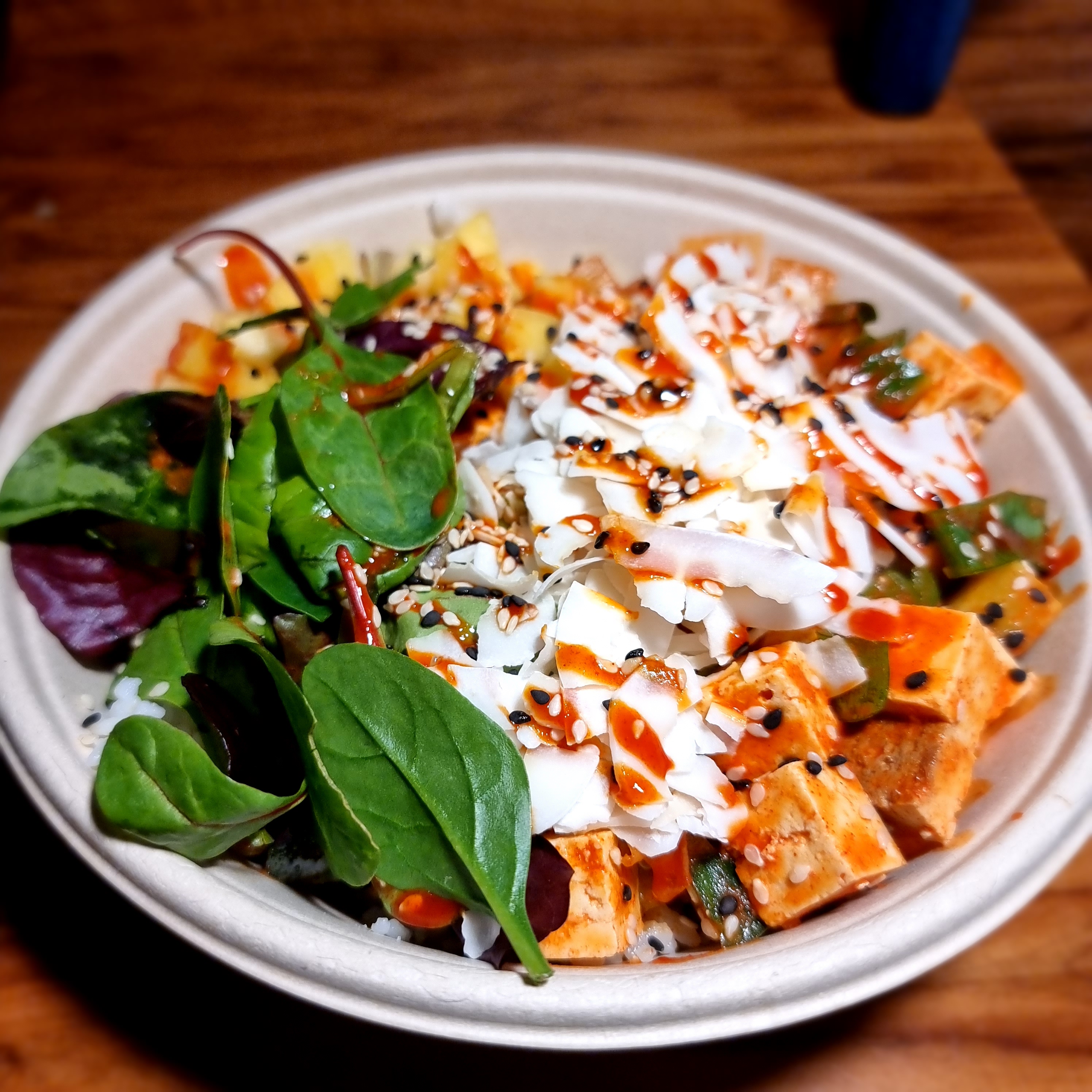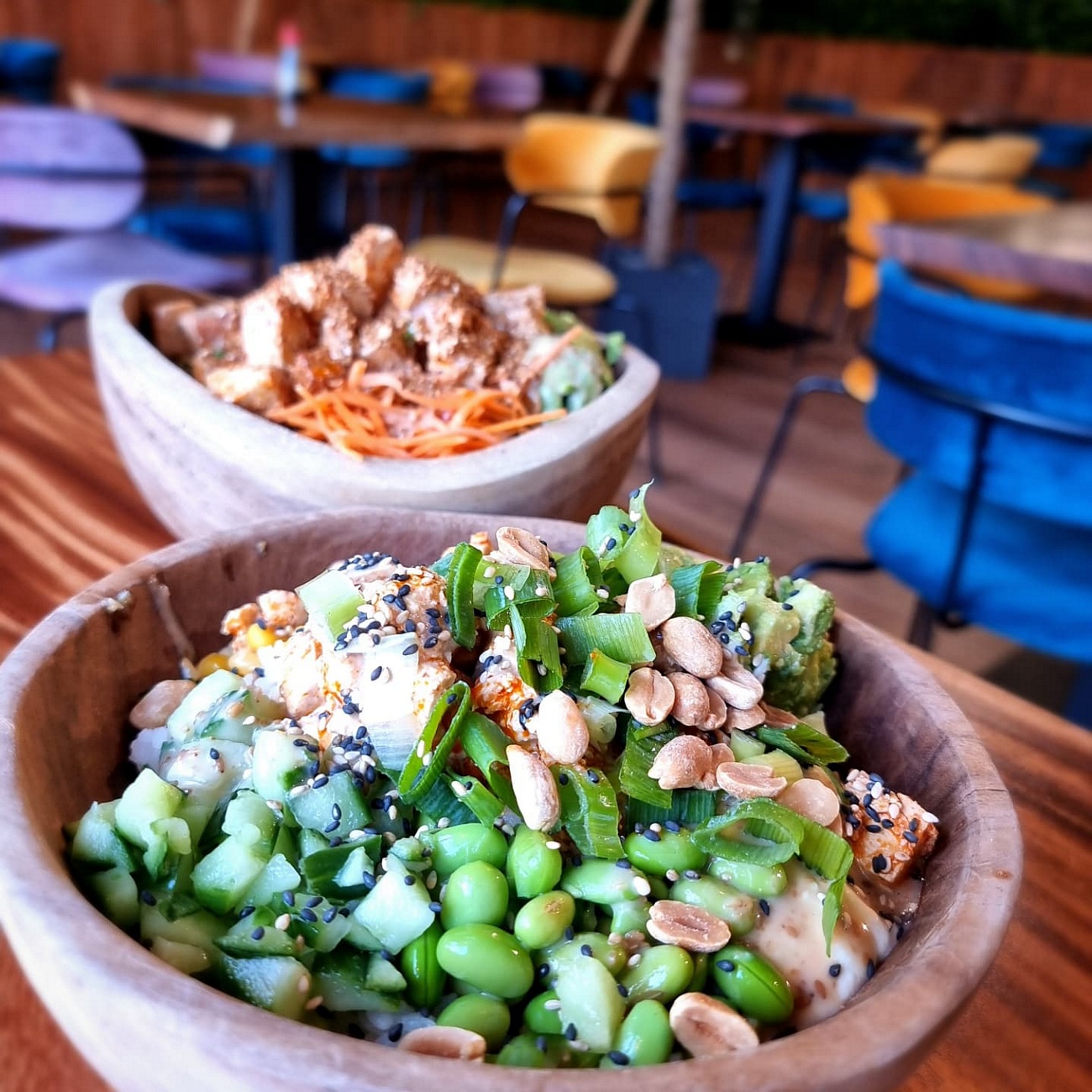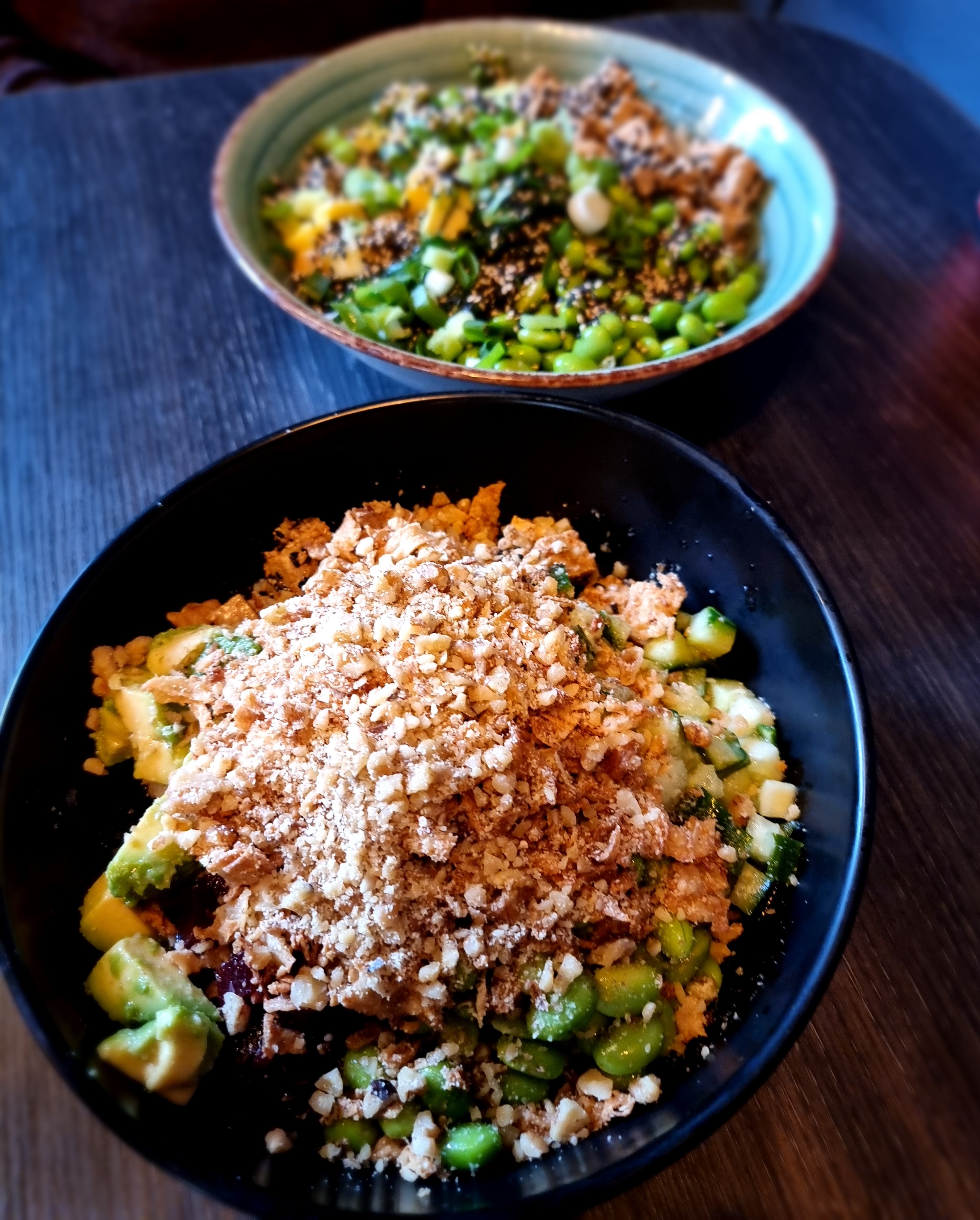 restaurant review #447 – I love these type of poke bowl places, and great to see them pop up everywhere. We have already been to the sister restaurant of Ohana Poke Bowls in Oostende (REVIEW), and so decided to try this new one in Roeselare (opened in 2023 I think)! When we arrived just after noon there were still some tables, but later the place filled and there was a queue at the counter.Compose your own bowl by filling out the paper form available at the counter. Tofu available as vegan protein option.