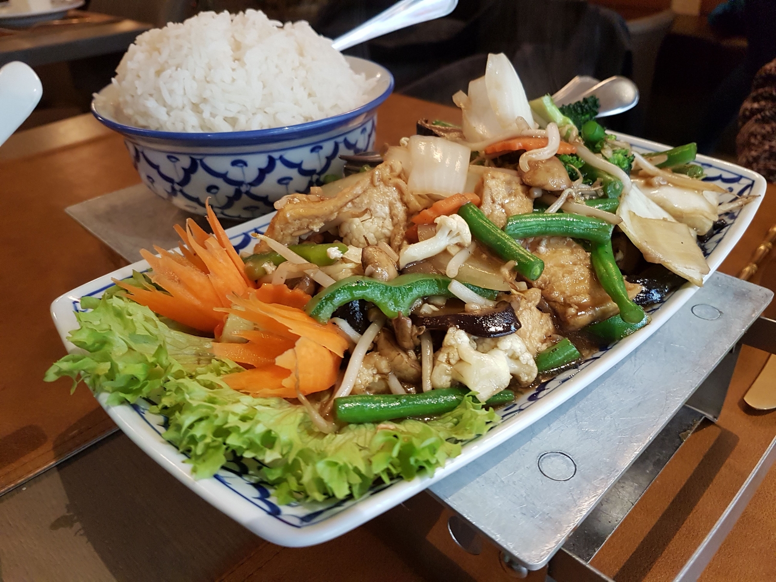 restaurant review #223 – Than Thai is a Thai (obviously!) restaurant in the city center of Kortrijk. We were here for lunch on a weekday, a couple of weeks ago. The restaurant is divided into two rooms, bot facing the street, adjacent to each other. The interior is quite nice, comfortable and colourful. Staff were very friendly and welcoming. Vegetarian dishes are mentioned seperately on the menu. A lot of them contain oystersauce though. We inquired about the possibility of vegan oystersauce, but it ws said not to be available that day. Two dishes were said to be vegan: the tofu red curry with coconut milk (18,50€) and the garlic ‘black pepper’ tofu (17,50€). The dishes came with white rice (with fried onions on top). The food was nice, big portions. The red curry is very (VERY) spicy though. The restaurant room is accessible, but the toilets are with stairs (very dark!) going up, and are not accessible. Toilets were clean and tidy. We had a nice lunch at Than Thai, good food, enjoyable atmosphere, …