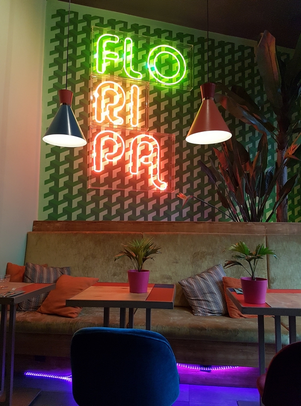 restaurant review #176 – Floripa is a vegan food and cocktail bar in city center of Barcelona. It is located a short walk north west of Placa de Catalunya. We visited a couple of months ago, on our last day in Barcelona. (More reviews of Barcelona HERE). — Update: see below Despite it being a drowsy and grey day, the interior of Floripa gave a warm and welcoming feeling. Bright colours and joyfull design! There is one area in the front with natural light coming in, another area at the back that is darker (we were seated here, hence my photos of the food didn’t turn out quite well), but with changing light colours in the ceiling. We also liked the music! We shared bruchettas (5,40€) as an appetizer. Then we had the nippon Burger (11,90€), and the crispy chicken tempeh burger (9,90€). Afterwards, we shared a chocolate mousse (4,90€) for dessert. There is local beer from draft available (2,5€). Glass of wine was 3€. The nippon burger was more of a patty, the chicken burger …