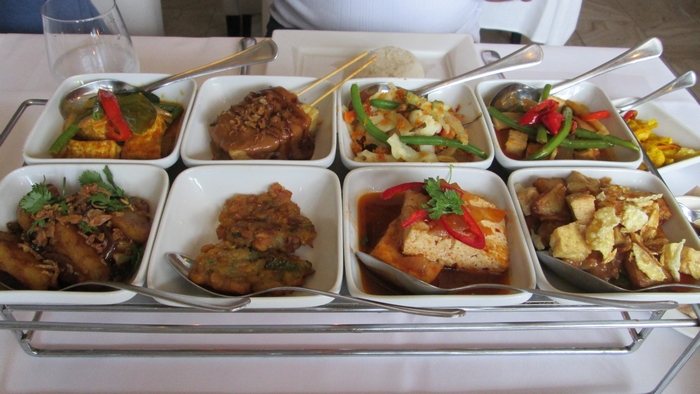 Restaurant review #22 – Bali is an Indonesian restaurant (obviously) in Wommelgem (about 7 km east of Antwerp). It had been on our ‘to visit list’ for many years (we love Indonesian food!), but for many reasons we never managed to get there before. One of those reasons being the restaurant not being open for lunch (usually the time we are in the area). There are plenty of Indonesian restaurants in The Netherlands (given the historical link with the country), but they are a rarity in Belgium. So we were glad we finally managed to get to restaurant Bali in Wommelgem. Besides other vegan items on the menu, there’s also a vegetarian rice table for 25€ per person (minimum of 2 persons), which can be veganised. We asked to leave the item with egg out of the rice table, which was no problem. We also checked whether the ‘fried banana’ (often included in Indonesian rice tables) didn’t contain any egg. The waiter was very friendly and made no problem to go check in the kitchen. As a …